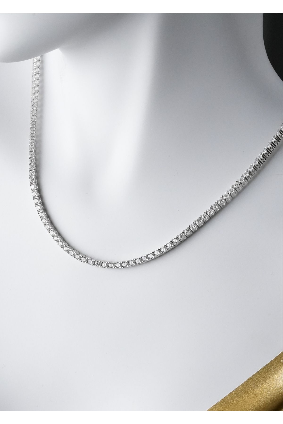 925 Ayar Gümüş 3mm Taşlı Klasik Su Yolu Kolye, göz alıcı 3mm zirkon taşların sıra halinde dizildiği, klasik ve ışıltılı bir tasarıma sahiptir. Şıklığı ve zarafeti bir arada sunan bu kolye, özel gün kombinlerinin vazgeçilmez tamamlayıcısıdır.