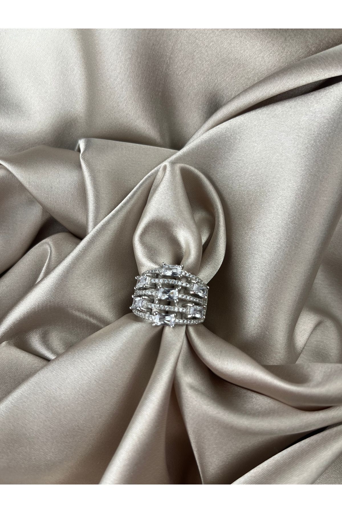 925 Ayar Gümüş 5 Sıra Baget Taşlı Yüzük, modern ve göz alıcı tasarımıyla beş sıra baget taş detayını bir araya getirir. Yüzüğün zarif dizaynı, her stile uyum sağlayarak özel günlerde ve günlük kullanımda şıklığınızı tamamlar.