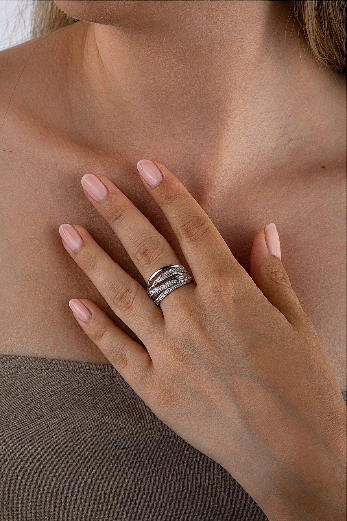 925 Ayar Gümüş 6 Sıra Bantlı Taşlı Yüzük, göz alıcı çok sıralı taş dizilimi ile tarzınızı bambaşka bir seviyeye taşır. Üst üste dizilmiş 6 bantlı taşlı tasarımı, hem modern hem de klasik şıklığı bir araya getirir.