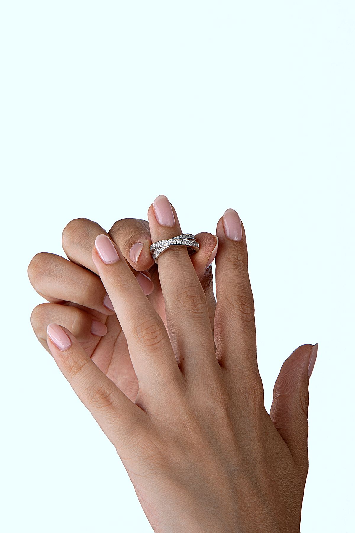 925 Ayar Gümüş Çapraz Çift Bant Yüzük, şık ve modern çapraz çift bant tasarımıyla dikkat çeker. Zarif detaylarıyla stilinize özgünlük katar.